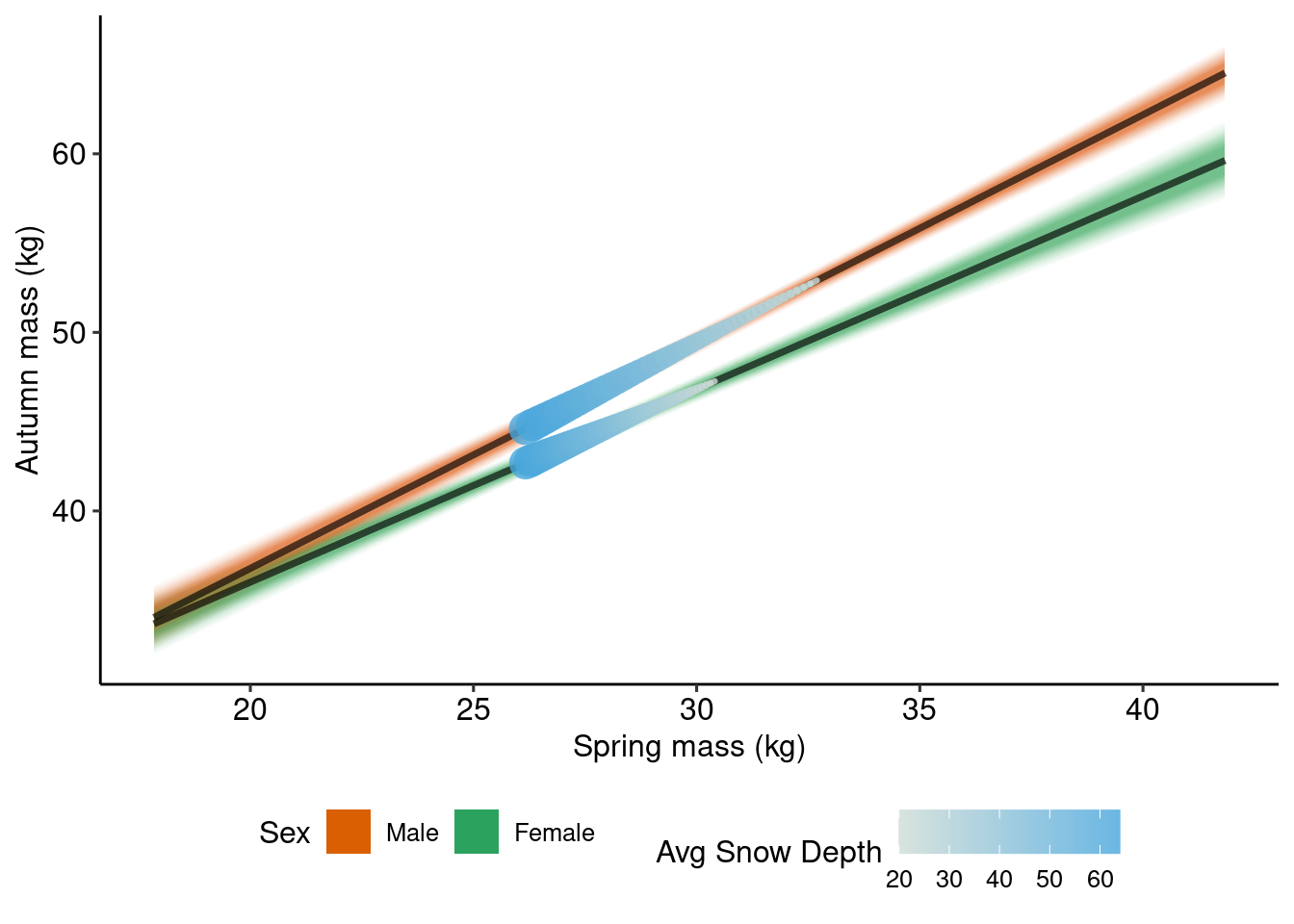 geom_line(data = p_ind_snow_smass_lambs, aes(x = next_wtd12, y = estimate, color = avg_snow_depth, linewidth = avg_snow_depth, group = Sex), lineend = "round") +